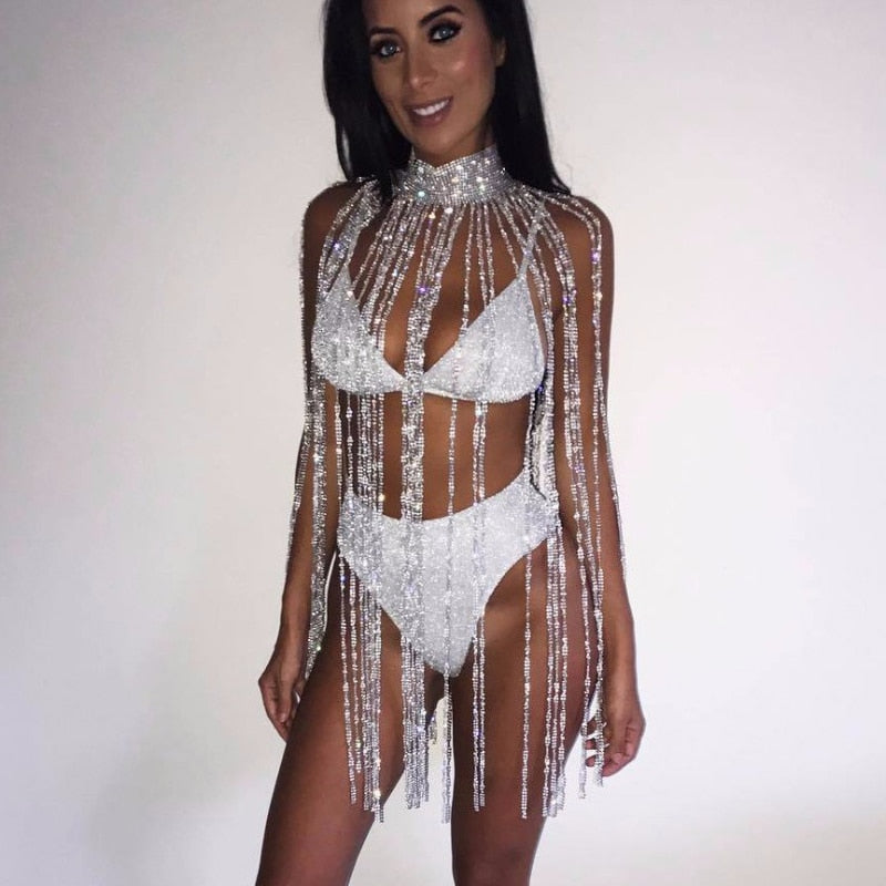 MeaniBeauty Shiny Crystal Rhinestone Tassel Dress